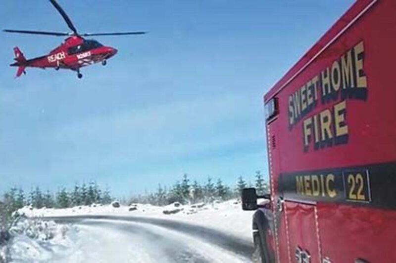 Sweet Home Fire was able to make access to both these loggers because of its new four-wheel-drive medic unit, which was made possible by a anonymous donation that allowed Sweet Home Fire to purchase the four- wheel -drive medic unit. ‘