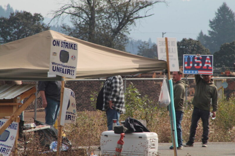 Northwest Weyerhaeuser workers already agreed to concessions in their most recent contract, including a two-tier set-up which terminated the pension for new hires. They also agreed to allow the company to leave the union-sponsored health and welfare trust, and workers say the health insurance benefits that replaced it aren’t as good. Strikers have said they’re determined not to make concessions again.