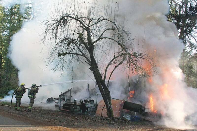 Sweet Home firefighters responded to a fully involved fire in the single-wide manufactured home at 47620 Cascadia Drive, east of the intersection of High Deck Road and Cascadia Drive and Short Bridge, at 2:34 p.m.